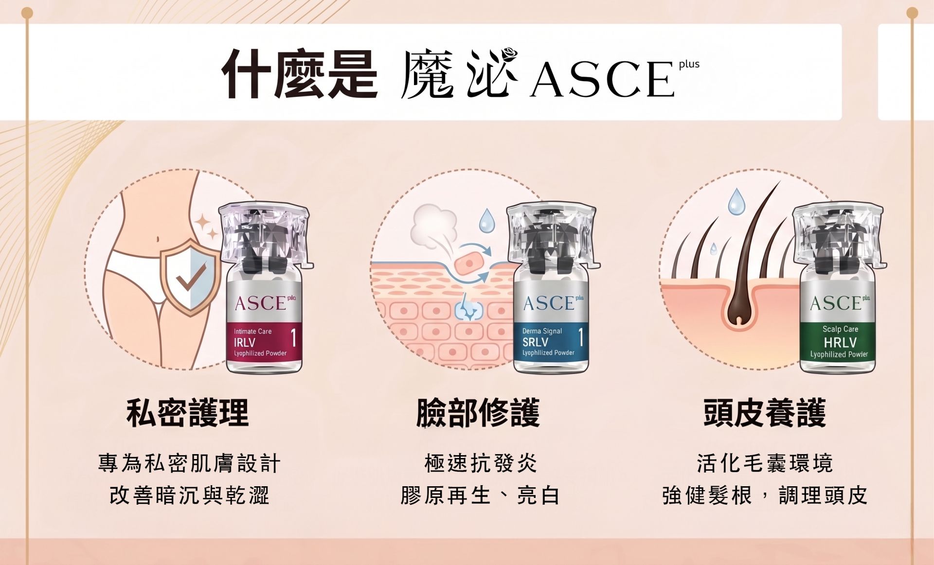 | 核心目標 | 膠原新生、抗發炎 | 活化毛囊、強健髮根 | 潤澤修復、改善暗沉與乾澀 |