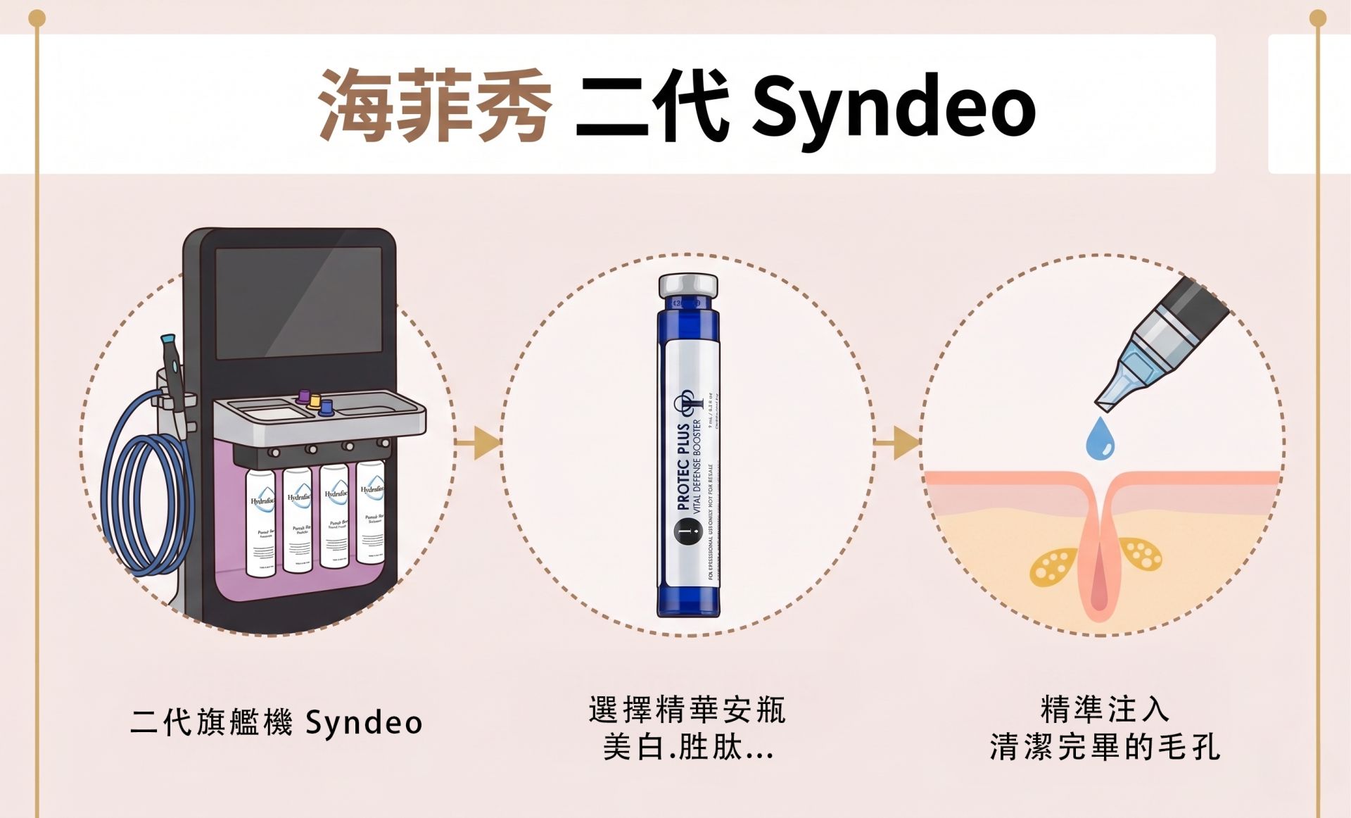 海菲秀(HydraFacial)是全球知名的非侵入式煥膚療程,而最新的二代 Syndeo 則在原本的「渦漩淨膚技術」基礎上進行了數位化轉型。它不只是清潔,更是透過智能感應與大數據分析,為您的肌膚量身打造專屬處方。