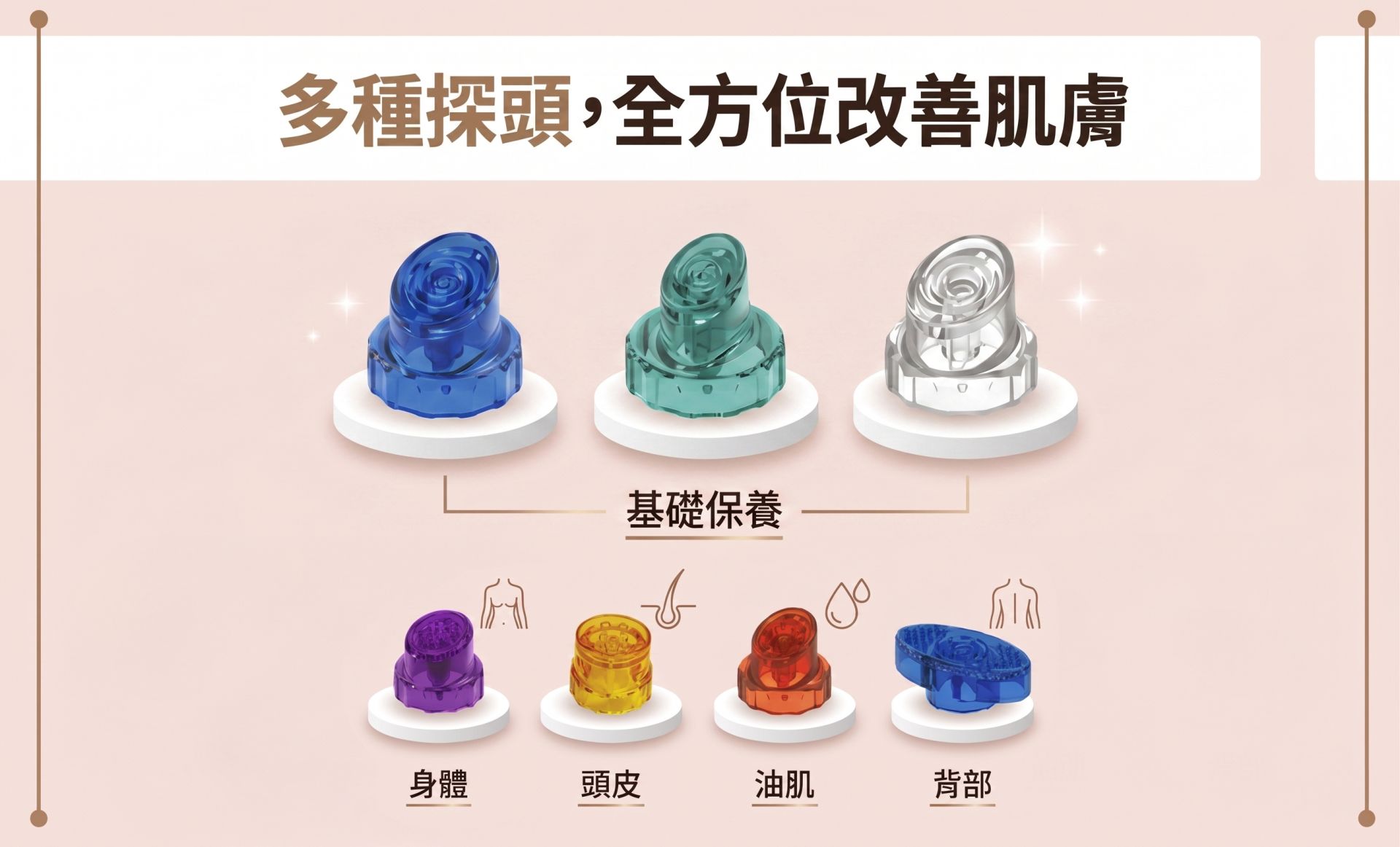藍色探頭能溫和舒緩地去除老廢角質,讓肌膚重現新生。